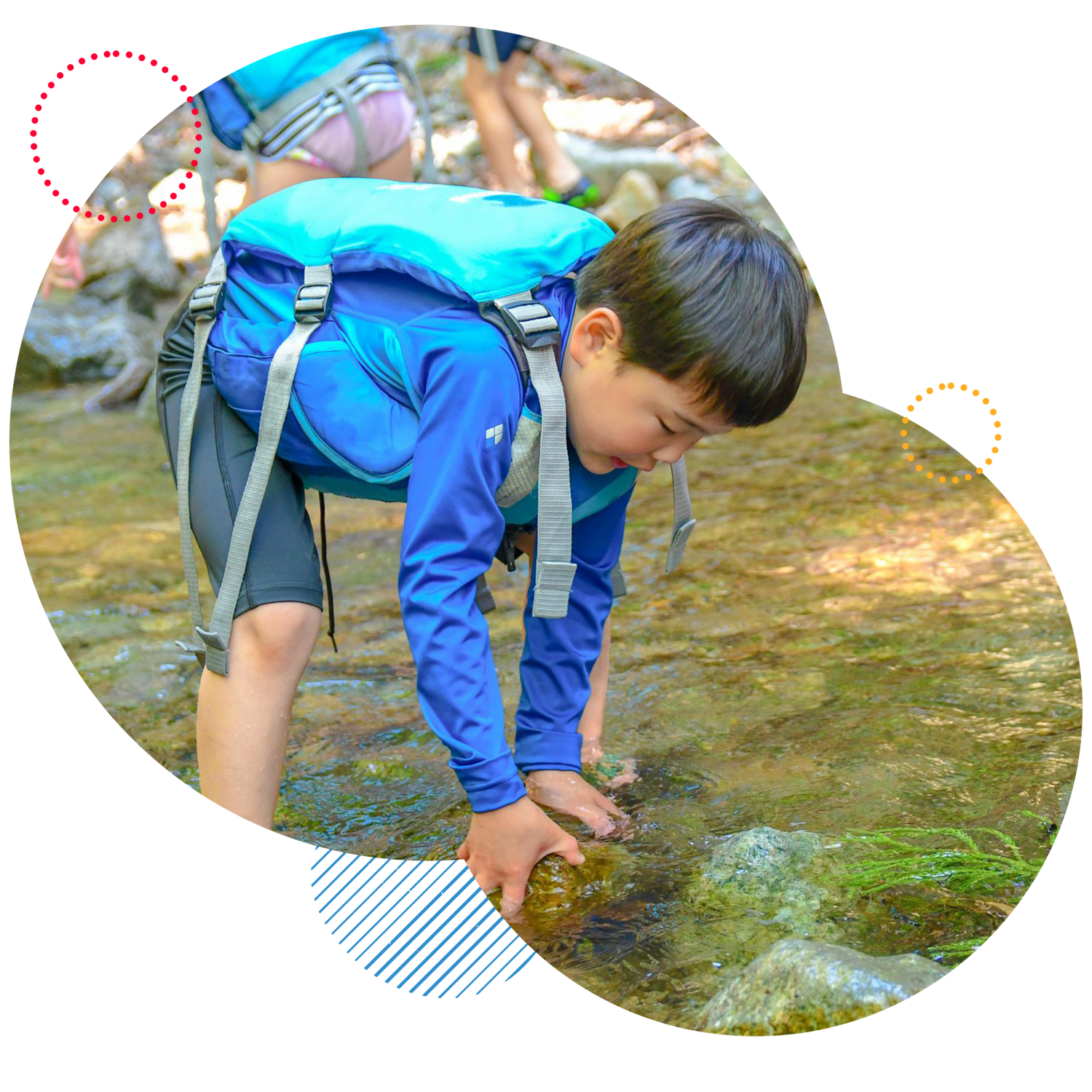 幼児限定自然体験シリーズでは、幼児の「やりたい」と思う自主性と好奇心を尊重し夢中になっていることに没頭できる環境を整えること、そして成功も失敗も許容できるおとなが寄り添い、幼児の言葉や感情に共感することを大切にしています。